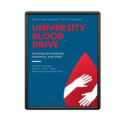 Poster Snap banner holder is made of silver anodized aluminum which gives the display a sharper look when compared to plastic banner holders, and it’s durability is ideal for long term advertising on store windows, when suspended from the ceiling, or when wall-mounted.
