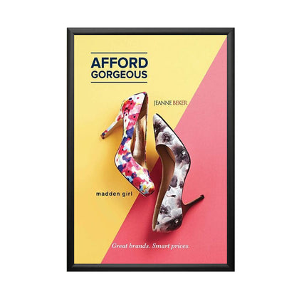 Aluminum Snap Frames 10x20 are the most popular changeable poster displays. Simplicity and low cost are the primary reason as well as offering the most popular 10 x 20 poster frame finishes, black, silver and gold that fit comfortably within numerous interior retail store decors. One 10 x 20 poster display or several 10x20 sign frames or thousands of 10x20 frames, “poster snaps” remains the favored choice for small and large businesses, retail stores, corporations, institutions and as a POP display signage fixture. Wall mount and snap open your 10x20 snap frame, update your 10 x 20 poster, and snap shut. That's it!