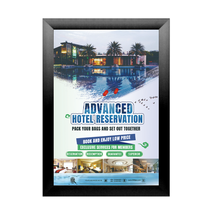 There's no other framing system like it. Our patented 10x20 poster frames, "SwingFrame" features hidden hinges and gravity lock. The beauty of the SwingFrame is that once it's wall mounted, you can't tell that it swings open. Just swing open. Place your 10x20 poster or other insert. Swing Close. Unlike permanent 10x20 picture frames, you don't have to dismantle the SwingFrame to update your marketing materials. thus making changing posters, other printed graphics and signage easy.