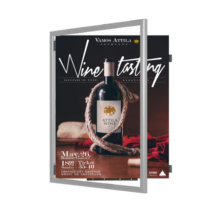 Uniquely designed sign frames and poster display holders that allow quick change of posters, advertising, graphics and signs while still wall mounted. The narrow 3/4" frame wall depth and 1 3/16" wide display frame profile has a clean, flat metal frame face that presents a "Euro-Style" contemporary design.