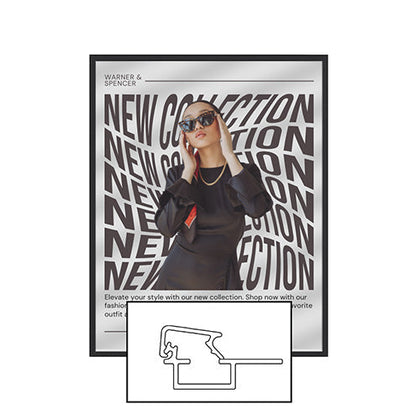 SwingSnaps presents a 2 1/2" wide-edge snap poster frame metal profile for more visual impact, and with a narrow frame depth of 3/4", this wall mount snap frame is ideal for displaying large format posters or to create a bold display frame look for small posters and signs.