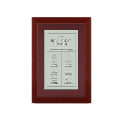 The wall mount wood poster display from SwingFrame features a classic wood picture frame style with a simple flat face that's 1 3/16" wide, the poster frame profile is unadorned, well proportioned and designed to compliment wide-ranging indoor environments where wood is an important design element to the interior decor.