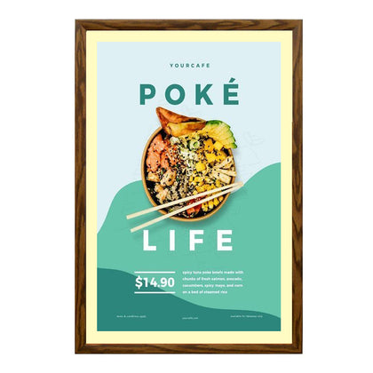 Cost effective. wall mount wood snap frames for small and large signage projects are accentuated with a simulated wood wrap finish and are the ideal choice for many quick change display applications that require an interior touch with a wood finish.
