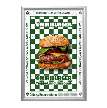 Economically priced, quick-changing, poster snap frames with radius corners allow you to effortlessly place and change your posters, signs, and advertisments.