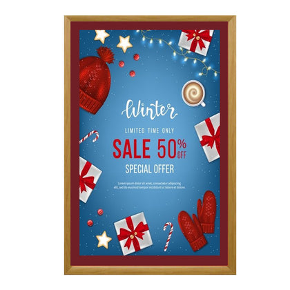 Cost effective, wall mount wood snap frames for small and large signage projects are accentuated with a simulated wood wrap finish and are the ideal choice for many quick change display applications that require an interior touch with a wood finish.
