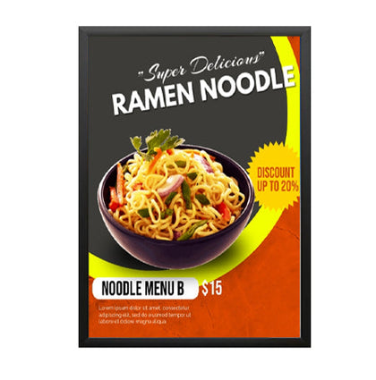 Aluminum Snap Frames 20x28 are the most popular changeable poster displays. Simplicity and low cost are the primary reason as well as offering the most popular 20 x 28 poster frame finishes, black, silver and gold that fit comfortably within numerous interior retail store decors. One 20 x 28 poster display or several 20x28 sign frames or thousands of 20x28 frames, “poster snaps” remains the favored choice for small and large businesses, retail stores, corporations, institutions and as a POP display signage fixture. Wall mount and snap open your 20x28 snap frame, update your 20 x 28 poster, and snap shut. That's it!