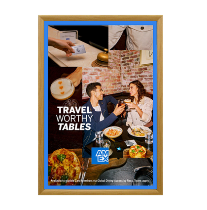 SwingFrame's 361 Wood Menu Display with its natural wood frame and simple 1 1/8” flat-face profile restaurant display is designed to present menus with style as well as swing open to quickly update your menus in seconds, and is enhanced with a matboard border the compliments the frame finish.