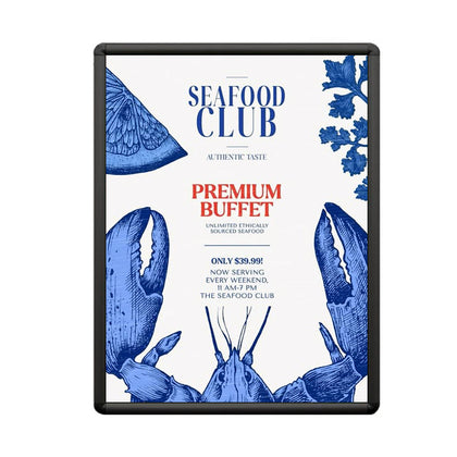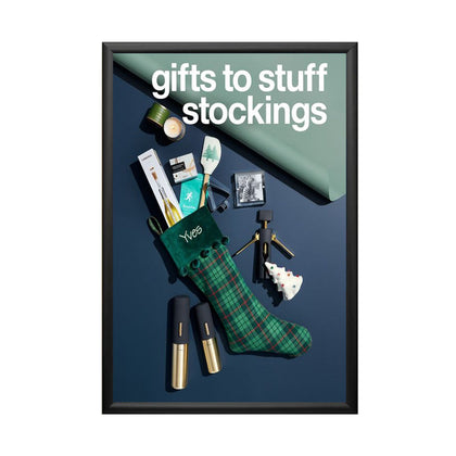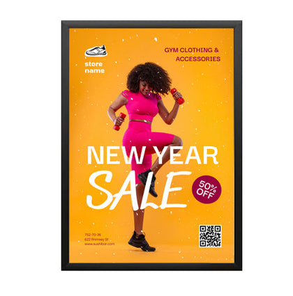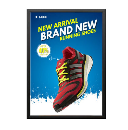 Aluminum Snap Frames 20x30 are the most popular changeable poster displays. Simplicity and low cost are the primary reason as well as offering the most popular 20 x 30 poster frame finishes, black, silver and gold that fit comfortably within numerous interior retail store decors. One 20 x 30 poster display or several 20x30 sign frames or thousands of 20x30 frames, “poster snaps” remains the favored choice for small and large businesses, retail stores, corporations, institutions and as a POP display signage fixture. Wall mount and snap open your 20x30 snap frame, update your 20 x 30 poster, and snap shut. That's it!