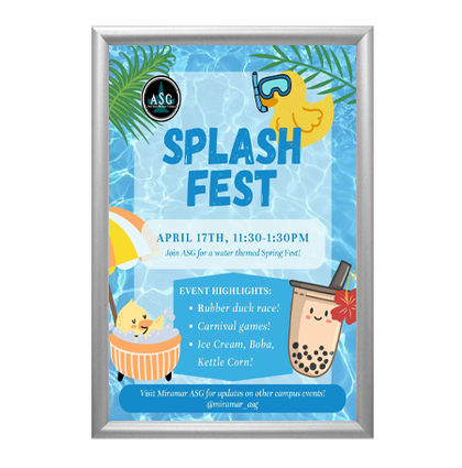 Whether it’s used as a marketing tool to brand your company logo, slogan, organization or some other message, SwingFrame's classic poster display frame with header panel lets you decide what needs emphasis, a great way to make to make a more effective poster display.