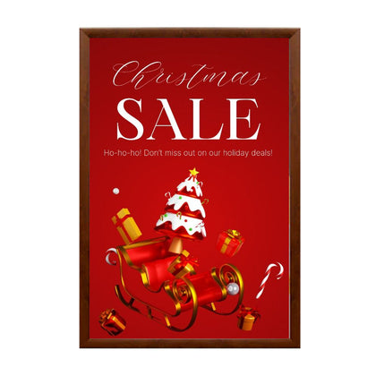 Cost effective, wall mount wood snap frames for small and large signage projects are accentuated with a simulated wood wrap finish and are the ideal choice for many quick change display applications that require an interior touch with a wood finish.