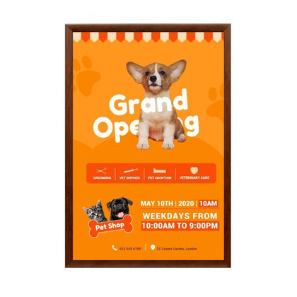 Whatever the application, these oversized, mitered, high quality, front-loading "SwingSnap" wood poster display frames make a popular poster display and sign holder, widely used for trade shows, exhibits, banks, and as store signage fixtures.