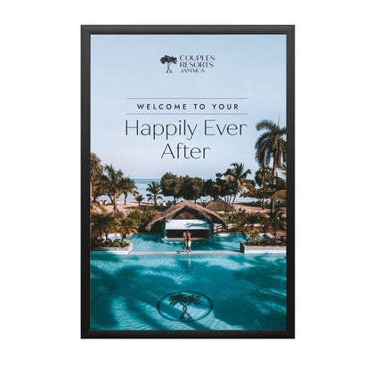 There's no other framing system like it. Our patented 24x60 poster frames, "SwingFrame" features hidden hinges and gravity lock. The beauty of the SwingFrame is that once it's wall mounted, you can't tell that it swings open. Just swing open. Place your 24x60 poster or other insert. Swing Close. Unlike permanent 24x60 picture frames, you don't have to dismantle the SwingFrame to update your marketing materials. thus making changing posters, other printed graphics and signage easy.