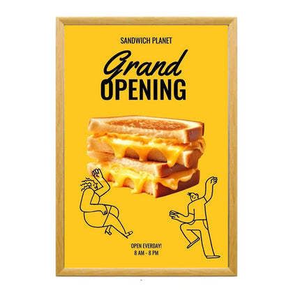 Whatever the application, these oversized, mitered, high quality, front-loading "SwingSnap" wood poster display frames make a popular poster display and sign holder, widely used for trade shows, exhibits, banks, and as store signage fixtures.