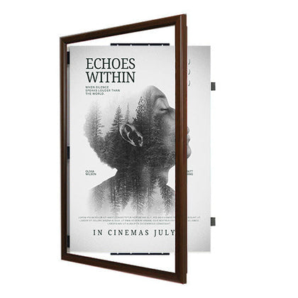 There's no other framing system like it. Our patented 27x39 poster frames, "SwingFrame" features hidden hinges and gravity lock. The beauty of the SwingFrame is that once it's wall mounted, you can't tell that it swings open. Just swing open. Place your 27x39 poster or other insert. Swing Close. Unlike permanent 27x39 picture frames, you don't have to dismantle the SwingFrame to update your marketing materials. thus making changing posters, other printed graphics and signage easy.