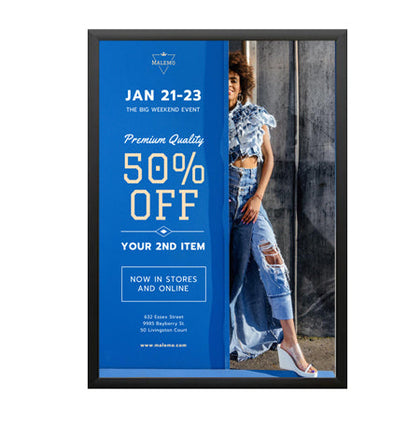 With dozens of matboard colors to choose from for your stylish designer snap open poster frames, you can create a classic picture frame style for posters, signs, ads, and photography.