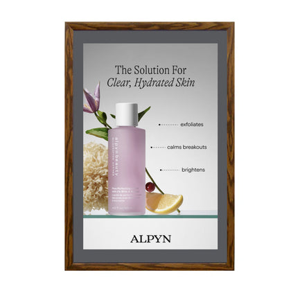 Cost effective, wall mount wood snap frames for small and large signage projects are accentuated with a simulated wood wrap finish and are the ideal choice for many quick change display applications that require an interior touch with a wood finish.