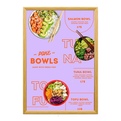 Top loading sign frames and poster frames 42x42 are the simplest and most cost effective changeable frames available. Buyers in every business and industry have purchased these42x42 frames to display all kinds of announcements in retail stores, corporate offices, exhibits and museums, tradeshows, hotels, schools and universities, medical centers, showrooms or add it as a signage frame to a point of purchase fixture –any place that requires a simple, quick changing wood or metal sign display holder that’s more than a conventional picture frame.