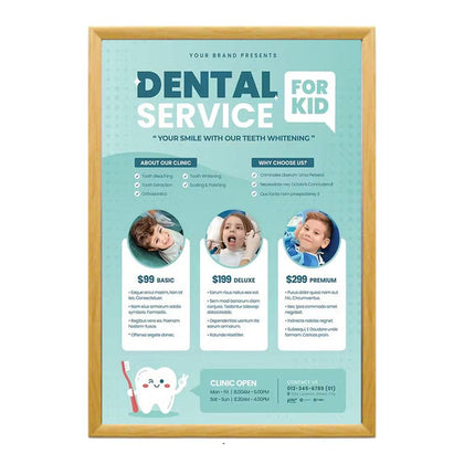 Whatever the application, these oversized, mitered, high quality, front-loading "SwingSnap" wood poster display frames make a popular poster display and sign holder, widely used for trade shows, exhibits, banks, and as store signage fixtures.