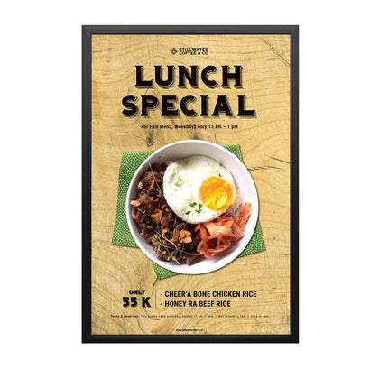 Many customers find a SwingFrame they like, and want to match it with a Standard Picture Frame for other locations that do not require a quick changeable framing system. We do that too! –whether Its one poster frame or thousands of poster pictures frames.