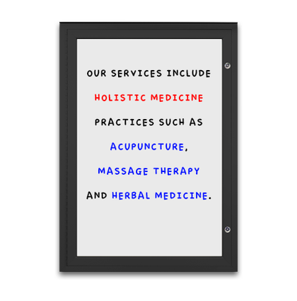 Moreover, the markerboard aluminum cabinet is equipped with a secure front lock that keeps the content safe and protected from theft and vandalism. The break-resistant acrylic window presents a clear viewing area, and a waterproof seal helps prevent water from seeping in, keeping the content dry and readable at all times.
