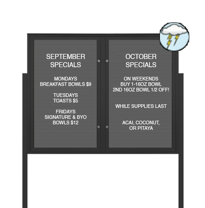 • Call for Custom Extreme WeatherPlus™ Letter Board Display Cases