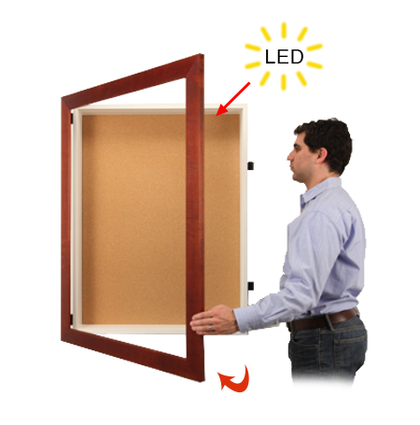 We offer long lasting 50,000 hour, cool white LED strip lighting. You have 2 options, one being an LED strip installed on the interior top side, which will spread downward to highlight your displayed items. The second option is to have the interior Perimeter (all 4 interior sides) installed with LED strip lights, creating a brighter presentation for your displayed contents.