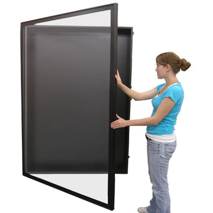 Choose from numerous small and large display case sizes, from 16" x 20", 22" x 28", 24" x 36", 36" x 48" up to 48" x 96", portrait or landscape orientation. Designed and built by our Swingframe Manufacturing, the 6" deep display cases can be flush mounted to the wall or inset.