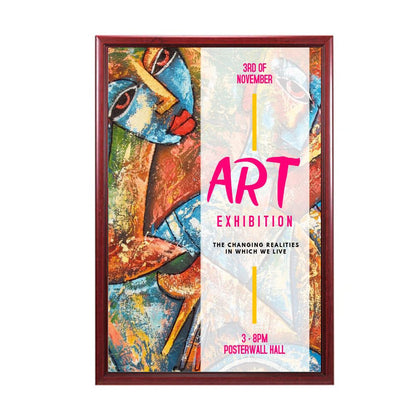 The Super Wide-Face Poster Frame presents a smart looking poster display that can be used in any interior environment that needs easy to change metal poster display frames with a super bold frame style.