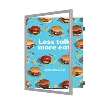 The SwingFrame Wood #361 Poster Display features a discreet sliding gravity lock that provides a basic level of security for your displays. However, in locations such as galleries, schools, or businesses that require additional security, this frame can be modified to include a side plunge lock and a key while retaining the gravity lock. This two-part locking system ensures that your posters, signs, or other marketing materials remain securely in place while still allowing for easy access when you need to update or change your displays.