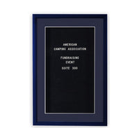 9 standard wood frame finishes, each with a complementary matboard color, plus custom options has made the #353 wood framed letter board; message and directory board, ideal for numerous corporate office interiors as well as retails stores, institutions and government agencies, any indoor location.