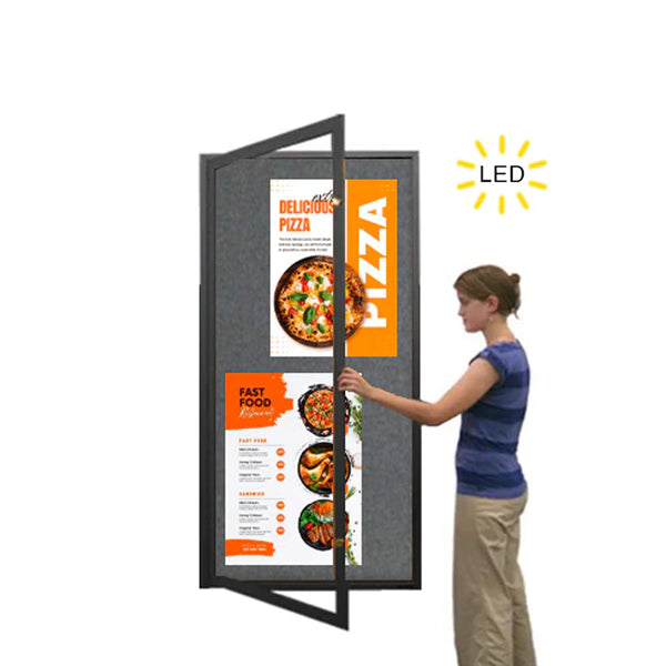 Our 40 x 60 "Swing Case" wall mounted Enclosed Bulletin Board Display Case features interior LED strip lighting that's positioned on top to bring more attention to your posters, graphics and other printed messages. LED lights are energy-efficient and long-lasting, with an average lifespan of approximately 50,000 hours.