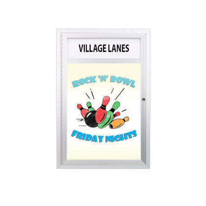 Outdoor Enclosed Dry Erase Markerboard with Header and LED Lights - White Porcelain Steel