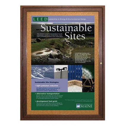 Radius Edge Poster Display Cabinet is built to withstand everyday outside elements while presenting your posters or other announcements. Weep holes are installed on the bottom of the cabinet to help expel any water. Vents help dissipate any and reduce any condensation buildup. Aluminum backing is secured with moisture-blocking silicone sealant.