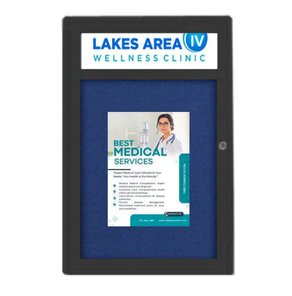 Outdoor LED Lighted Enclosed Bulletin Boards 19 x 24 with Header (Single Door)