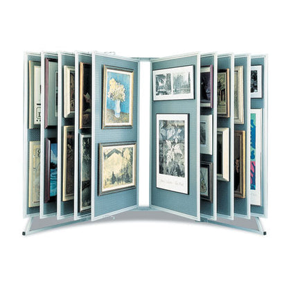 This multi panel provides a 90-degree viewing angle of presentation materials. Each unit accommodates 6 or 10 panels and is available in four panel sizes to choose from: 30" x 72", 36" x 72", 48" x 72" or 48" x 84"